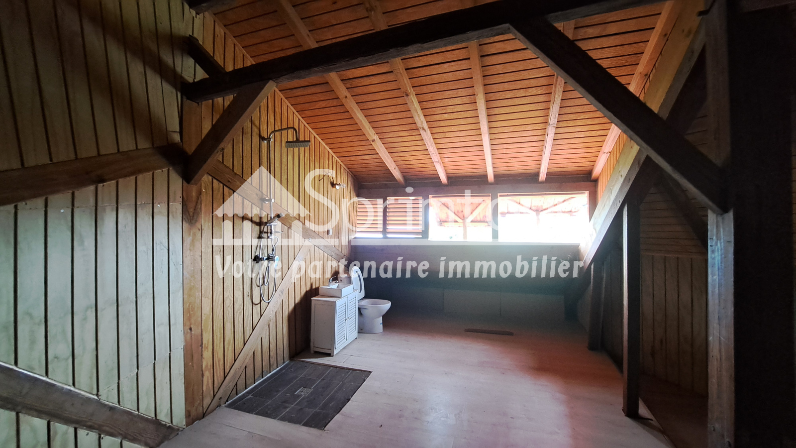 À l’étage, une mezzanine avec salle d’eau complète ce bien et offre une surface supplémentaire, idéale pour un espace bureau, une chambre d’appoint ou un coin polyvalent.