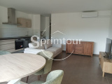 Composition intérieure : Une entrée , un séjour climatisé , une cuisine entièrement équipée (plaque, hotte, four, lave-vaisselle) , un WC indépendant , une salle d’eau et une chambre climatisée avec placard intégré